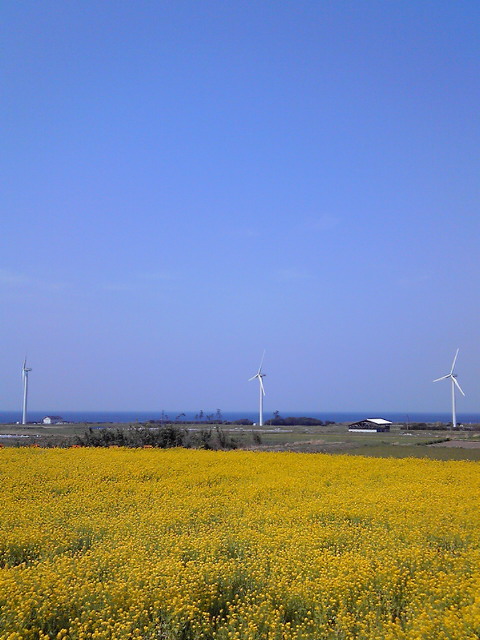 桜もちょっと咲き出してて、菜の花畑とかあったり(写真は水平線まで撮れている奇跡の一枚w)